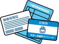 保険証:国民・社会・老人・介護保険、障害者手帳等、各種受給者証、医療券等。
