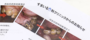 カラー写真つきの分かりやすい治療経過報告書を作成し、患者さま、ご家族さま、ケアマネージャーさまに治療計画を明確にお伝えします。